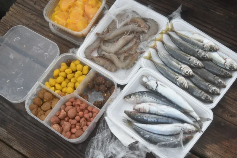 ・サシエ/練りエサ、エビ、小イワシ、豆アジ、サバの切り身ほか