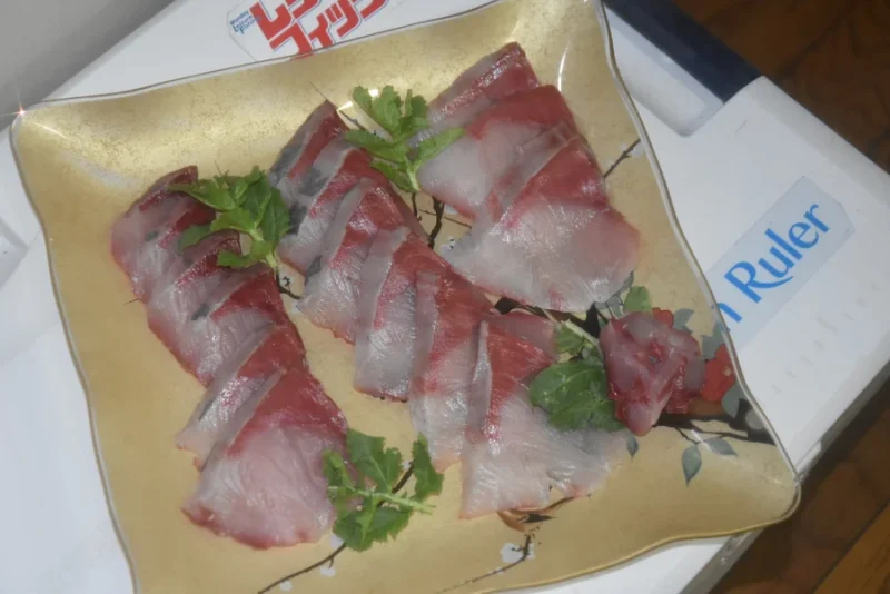 釣ったマダイとオリーブハマチは、お刺し身にして2家族で美味しく頂きました。そして、残ったマダイとオリーブハマチは、お裾分けとしてお嫁入りをして行きました。