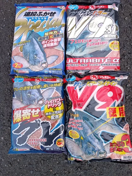 ・マキエ/遠投ふかせスペシャル、グレパワーV9スペシャル、グレパワーV9徳用、爆寄せグレ(マルキユー)