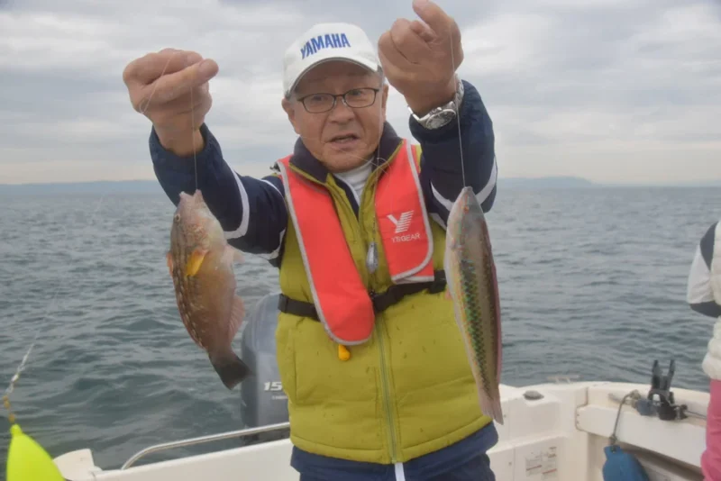 当日は、曇天にもかかわらず、波も穏やかで小物釣りにはうってつけのフィールドコンディションでした。また、高砂沖のベラは、私たちの期待に十分に応えてくれた半日でした。