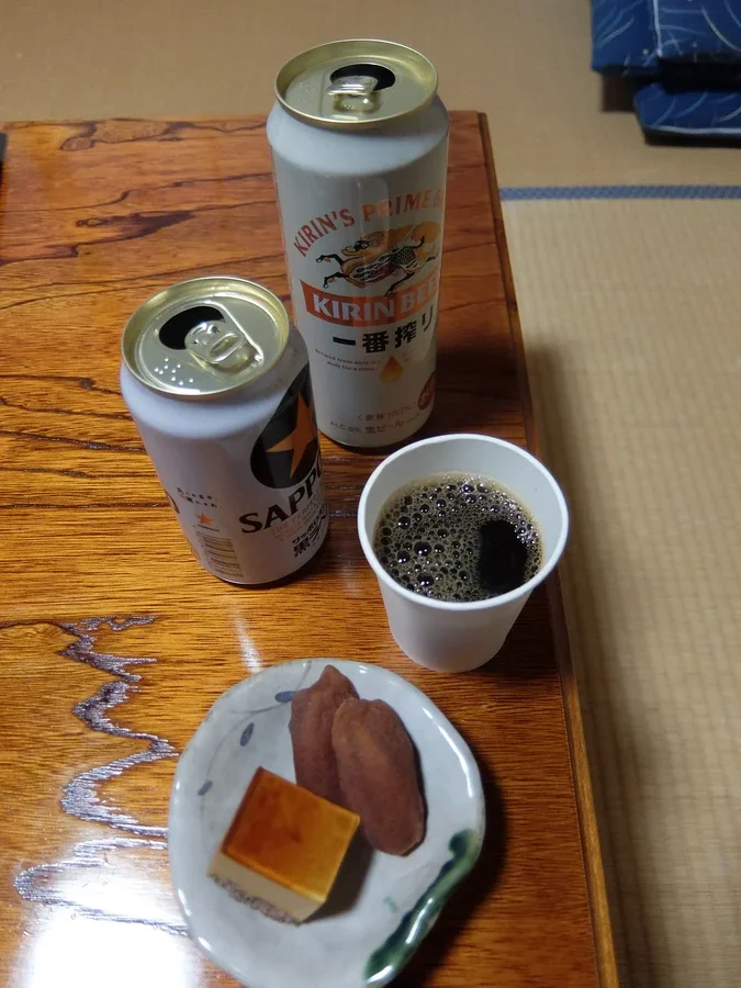 宿泊料込でこの豪華料理、美味いだけではなく季節感と瀬戸内海をすべて持って来た様な多様性、そして干し柿と珈琲プリン。持ち込みビールで豪華料理をいただいた後はインスタント珈琲でこの 甘すぎないオトナのスイーツの御口直し。素晴らしい。これぞ「旅釣り」なのだ。