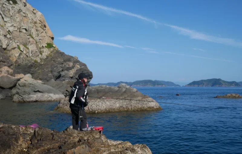 大会当日は多少の風はあったものの晴天。選手たちは抽選によって決まった渡船2隻(はまざき渡船、三浦渡船)に乗り込んで日振島の磯に渡りました。