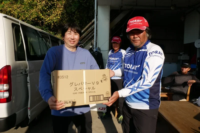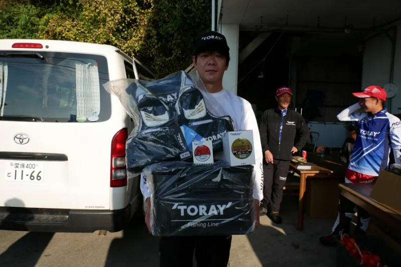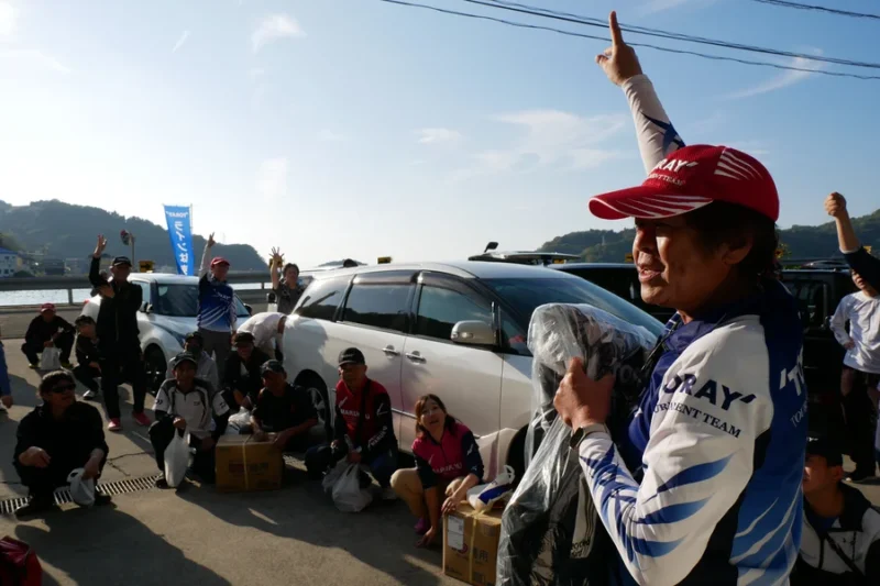 検量の結果、大型のグレを含めて3,262gの釣果をあげた谷本鋼紀選手が優勝を決めました。表彰式のあとは豪華賞品の当たる抽選会、ジャンケン大会と続き最後まで盛り上がった大会となりました。