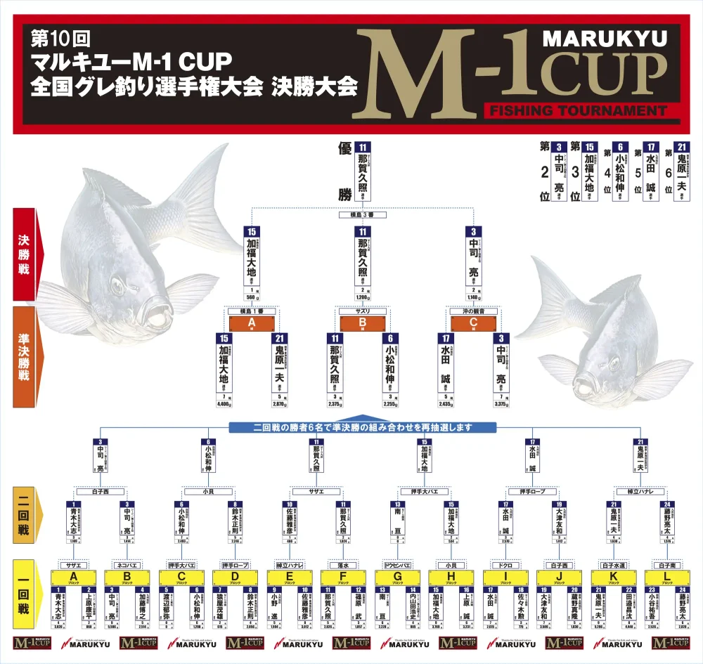 | 順位 | 選手名 | 尾数 | 決勝釣果 |