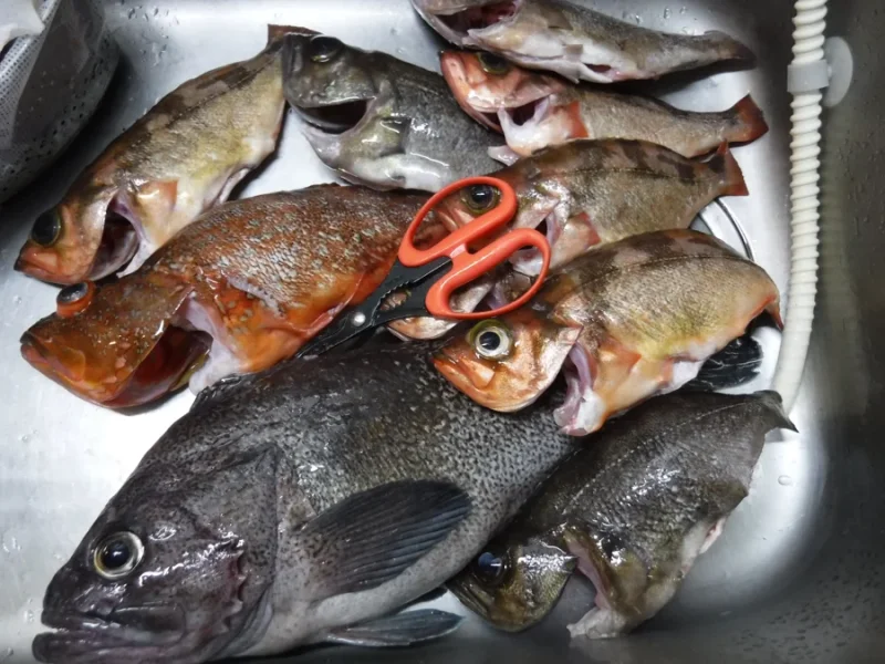 このような厳しい状況のため拾い釣りとなり、沖メバルやメバル、1キロちょっとのウッカリカサゴ等を追加。小型の物は全てリリースしていましたが、ほとんどがサイズが良い物だったのでお土産には十分でした。