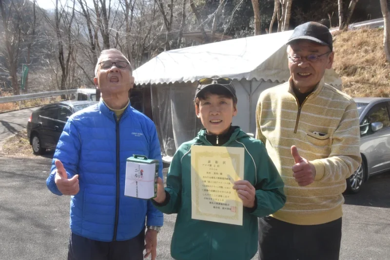 午後1時30分から表彰式では、ニジマスの部の52cmをトップに、アマゴの部と各部3位までが表彰され、また、この大会ならではの回収ゴミウエイトトップ賞の特別奮闘賞が表彰されました。