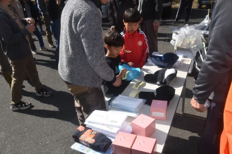 恒例の「ジャンケン大会」では沢山の賞品が並ぶ中、1人1品の賞品がプレゼントされて喜ばれました。なかでもメーカーキャップが大人気だったようです。