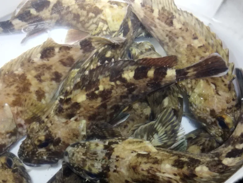 次々とこのパターンでヒットする春カサゴは、ゴジラ顔をしたオスもあれば口元の優しい表情のメスカサゴ、そして新子のチビカサゴとまちまちです。