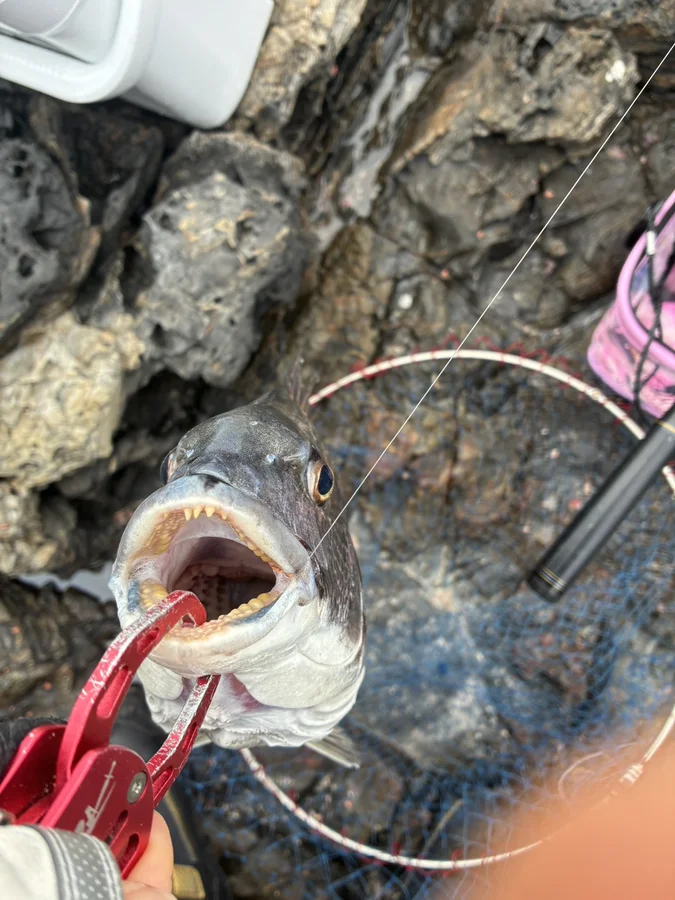 この磯でチヌやグレを釣りましたが、途中から離れ磯に上がらせていただき、ここでは40cmまでのグレを3匹釣ることが出来ました。